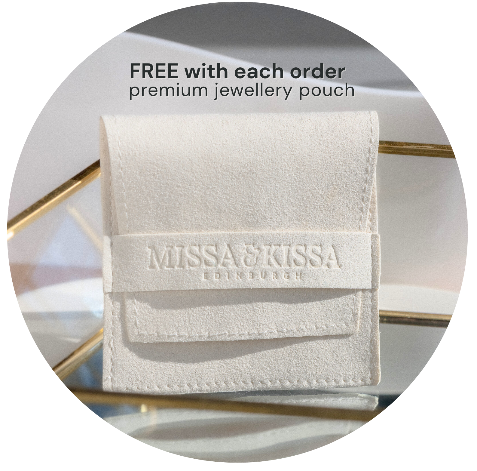Each order arrives in a branded recyclable box with a complimentary premium jewellery pouch, ready for gifting or safekeeping.